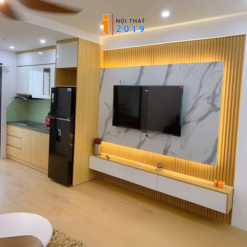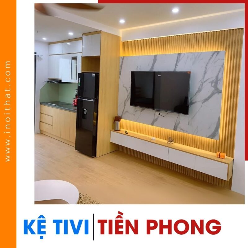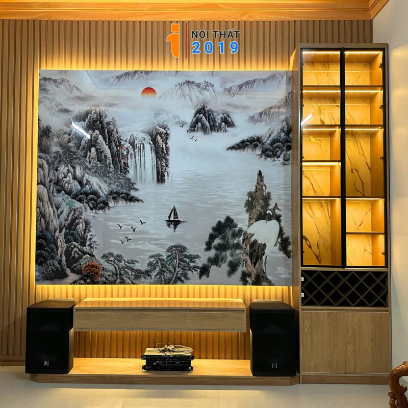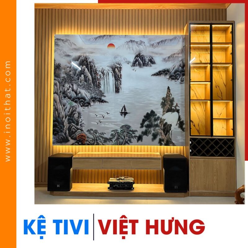 Kệ Tivi vân gỗ cánh kính kèm tranh thủy mạc tại phường Việt Hưng