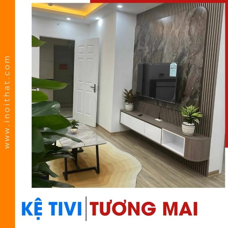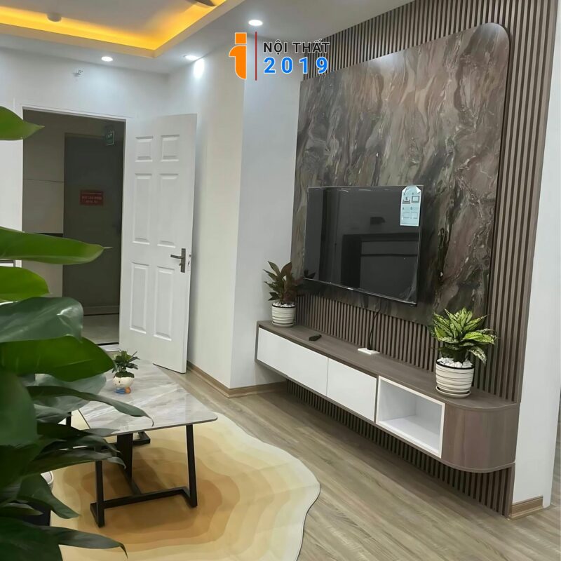 Kệ Tivi nhựa đặc cao cấp kèm ốp tường vân đá tại phường Tương Mai