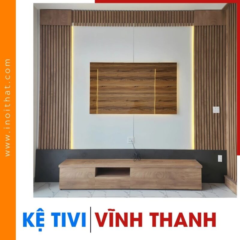 Kệ Tivi nhựa đặc cao cấp kèm ốp tường vân đá tại phường Tương Mai